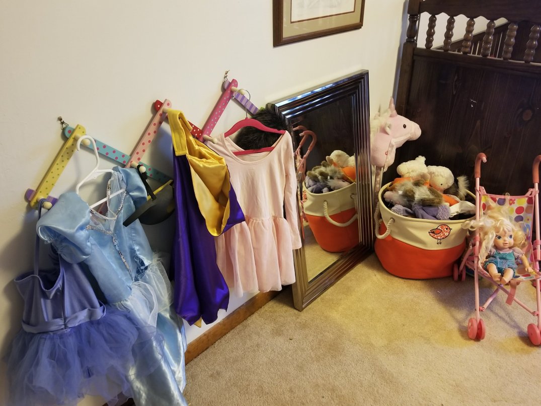 You show the kids, and they jump for joy. The carefully curated super hero, princess, frontier lady, and sizes for 3 girls. All thoughtfully arranged for ultimate organization and playability.